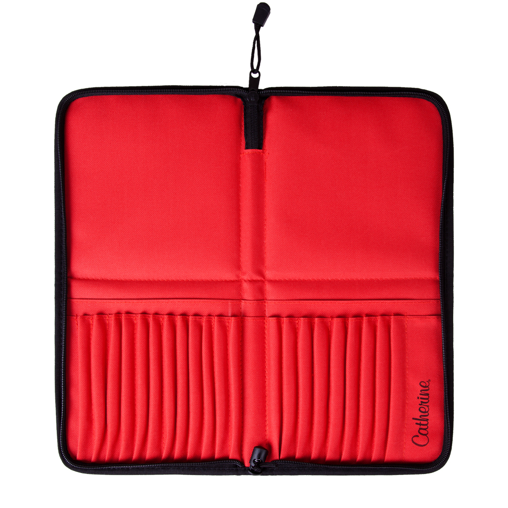 Cervená složka pro štetce. Prehledne zobrazuje všechny štetce. Štetce jsou vždy po ruce, nepotrebují další držák a není je již treba ukládat do zásuvky. Tím je zajištena organizovaná práce za všech okolností.