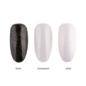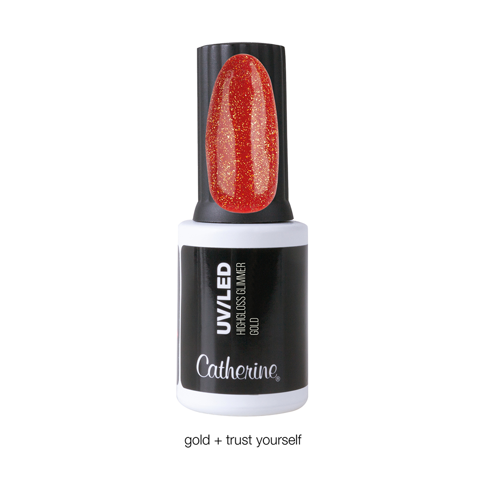 Pro vysoce lesklé finální zafixování s efektem zlatých trpytek. Trpytivý efekt vypadá ruzne v závislosti na barve podkladu, a proto jej lze také dokonale kombinovat s našimi trendovými barvami selfLOVE.