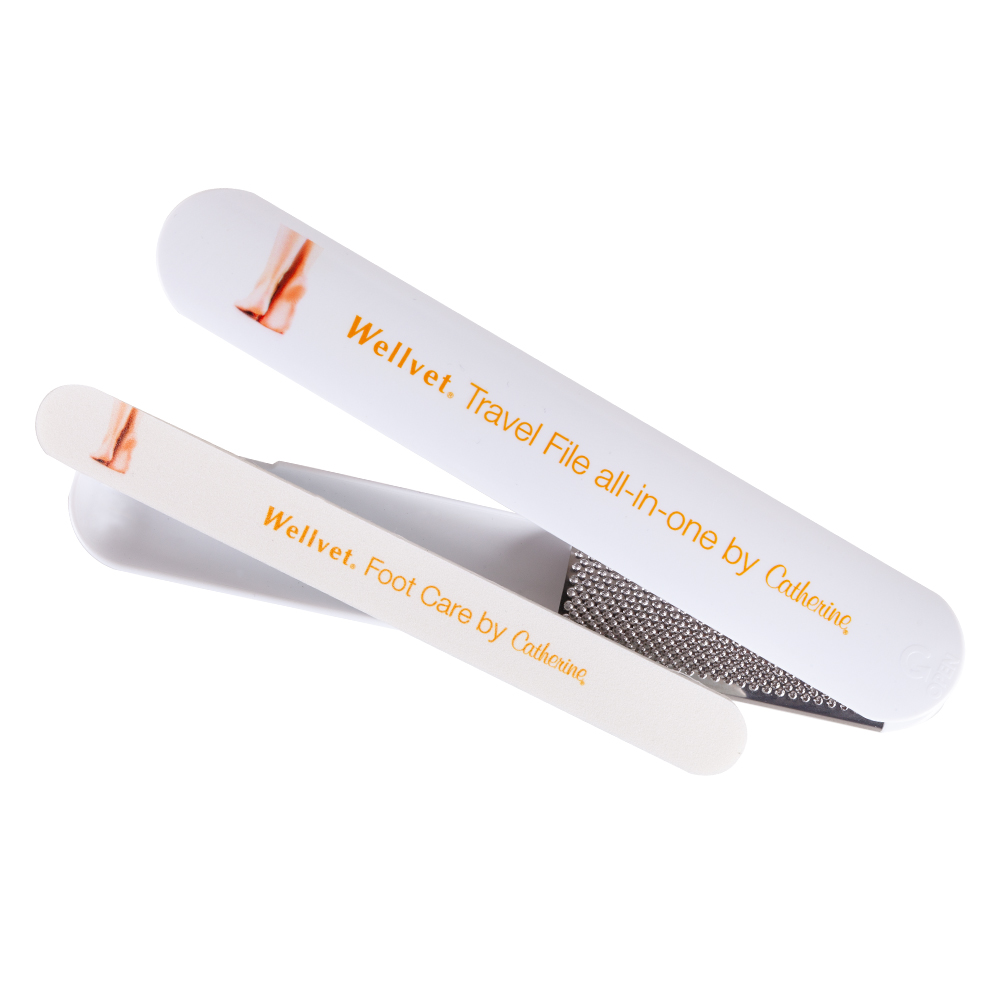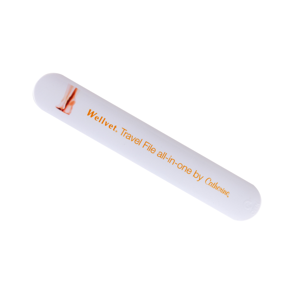 Pilník na nehty, pilník na mozoly a rašple na mozoly. Délka = 17,2 cm, šírka = 2,75 cm. Zrnitost: 240/240 a 600.