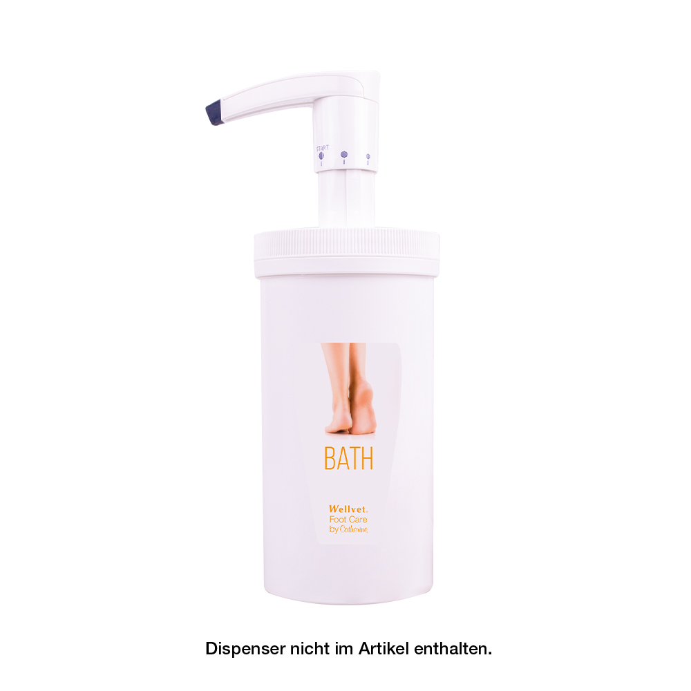 Koupejte v nem nohy po dobu 15 minut. Se zklidnujícím výtažkem ze šalveje, protizánetlivým výtažkem z hermánku, jako príprava na další produkty Wellvet. Tip: Následne použijte peeling, poté penu, krém nebo pletové mléko. Tip: Kupte si systém s dávkovacem.