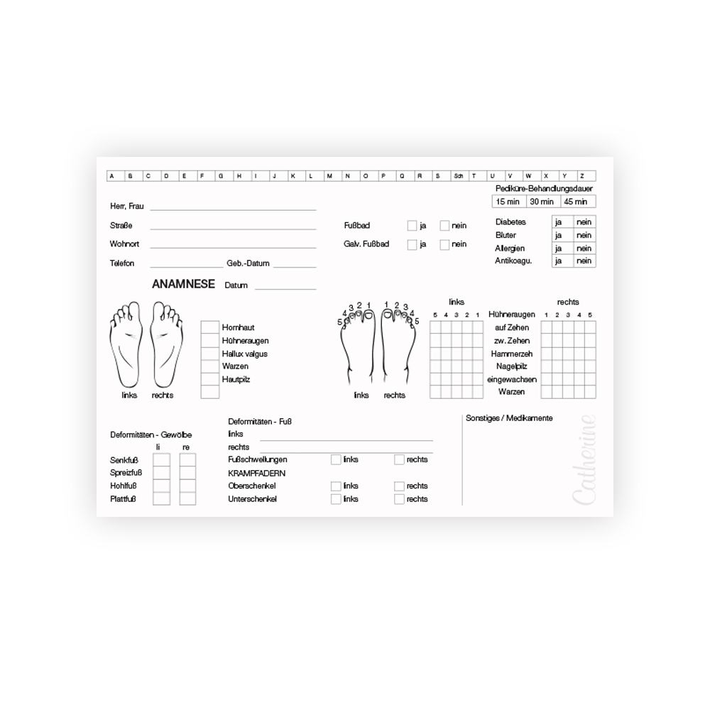 Informativní dotazník (potenciálne lékarsky relevantní). K zahájení péce o nohy optimálne pripraven. 100 kusu.