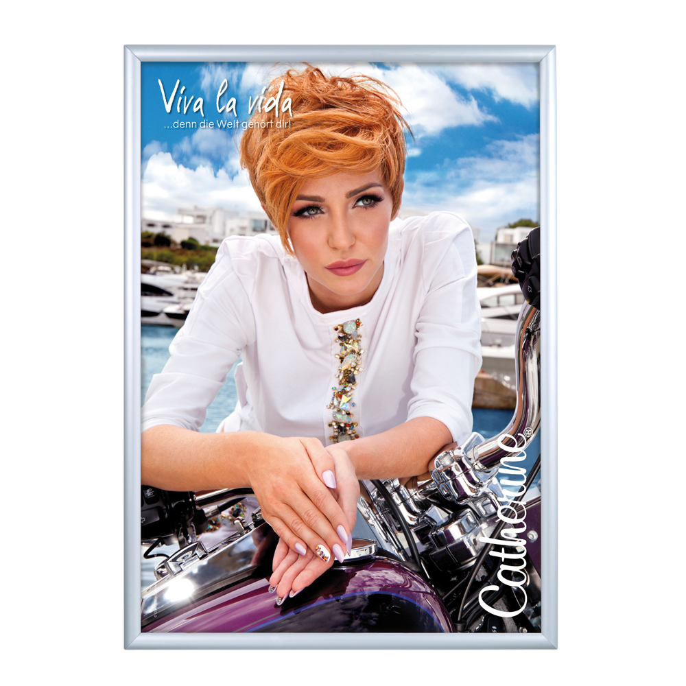Rámecky na plakáty. K dispozici jsou elegantní skládací obrazové rámy stríbrné barvy s matným vzhledem, které odpovídají formátu nových reklamních plakátu.
